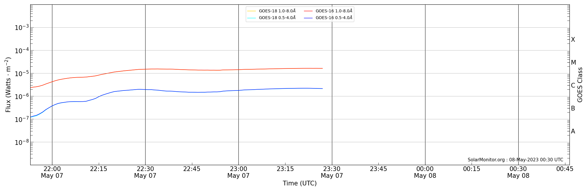 | 2023-05-07T22:53:00 | 23:23:00 | 23:46:26 | 15, 5 | 13296 | M1.6 | HEK : SSW Latest Events |