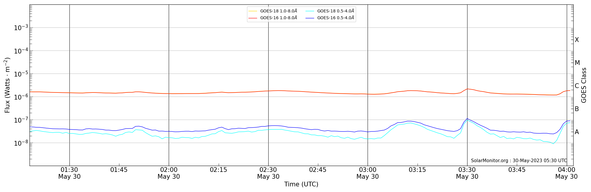 2023-05-30T02:18:00 | 02:33:00 | 03:02:00 | 14, -89 | None | C1.8 | HEK : SSW Latest Events |