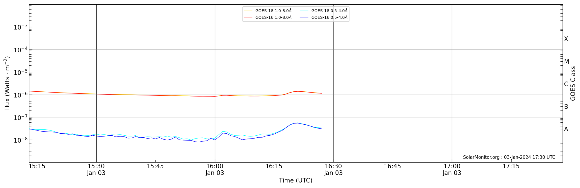 | 2024-01-03T16:13:00 | 16:21:00 | 16:28:00 | 26, -85 | None | C1.3 | HEK : SSW Latest Events |