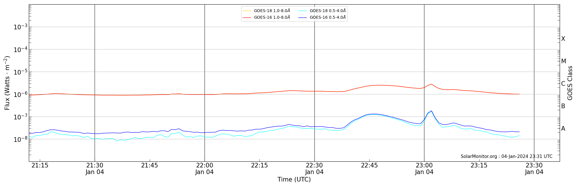 | 2024-01-04T22:12:00 | 22:24:00 | 22:37:00 | 10, -43 | None | C1.4 | HEK : SSW Latest Events |