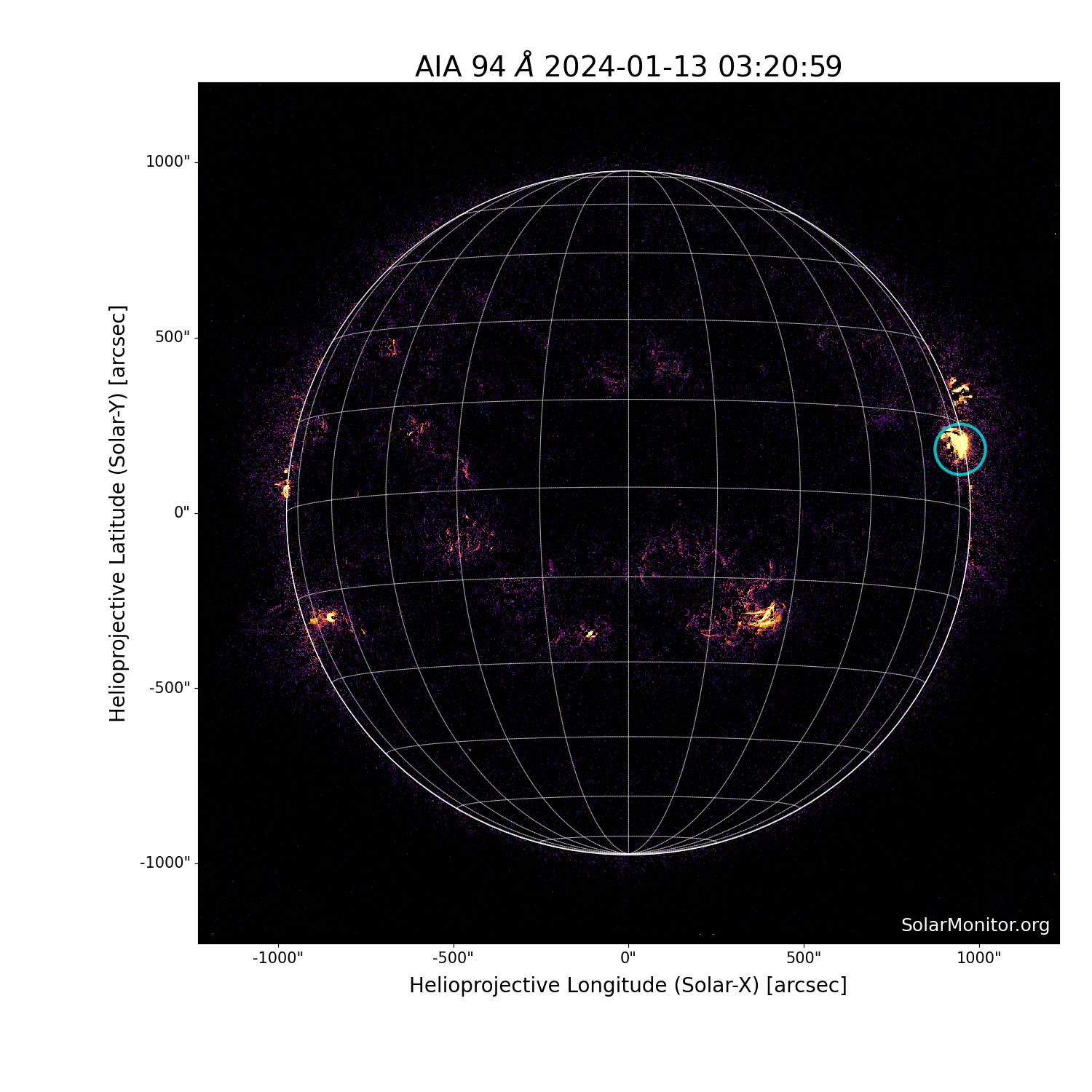 | 2024-01-13T03:12:00 | 03:21:00 | 03:30:00 | 10, 80 | 13539 | C3.0 | HEK : SSW Latest Events |
