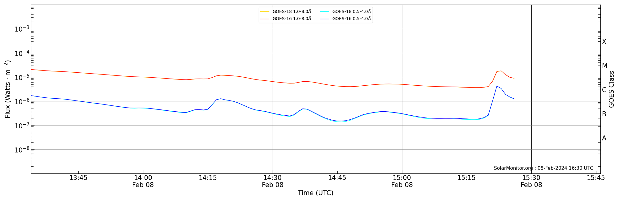 | 2024-02-08T14:34:00 | 14:38:00 | 14:46:00 | -13, -22 | 13576 | C6.6 | HEK : SSW Latest Events |