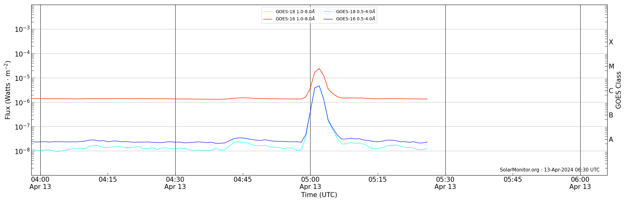 | 2024-04-13T04:58:00 | 05:02:00 | 05:06:00 | -12, -83 | None | M2.4 | HEK : SSW Latest Events |