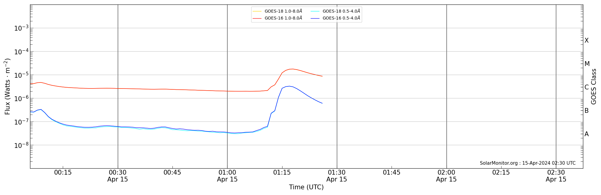 | 2024-04-15T01:06:00 | 01:18:00 | 01:37:22 | 28, -61 | None | M1.8 | HEK : SSW Latest Events |