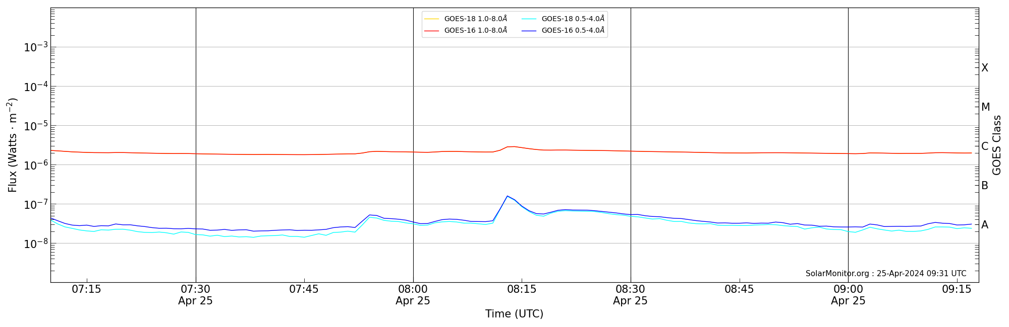 | 2024-04-25T08:10:00 | 08:14:00 | 08:18:00 | -11, 69 | 13647 | C2.9 | HEK : SSW Latest Events |