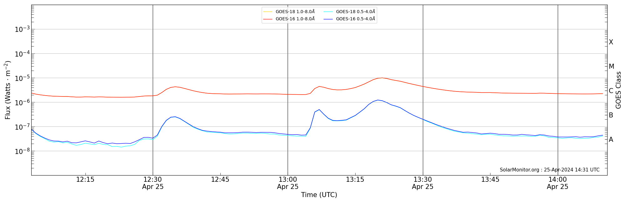 | 2024-04-25T13:03:00 | 13:07:00 | 13:11:00 | -18, 89 | 13638 | C4.4 | HEK : SSW Latest Events |