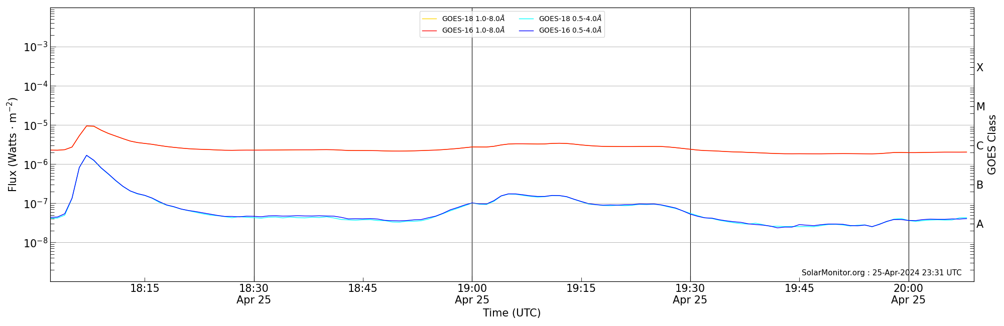 | 2024-04-25T19:02:00 | 19:06:00 | 19:09:00 | -18, 88 | 13638 | C3.3 | HEK : SSW Latest Events |