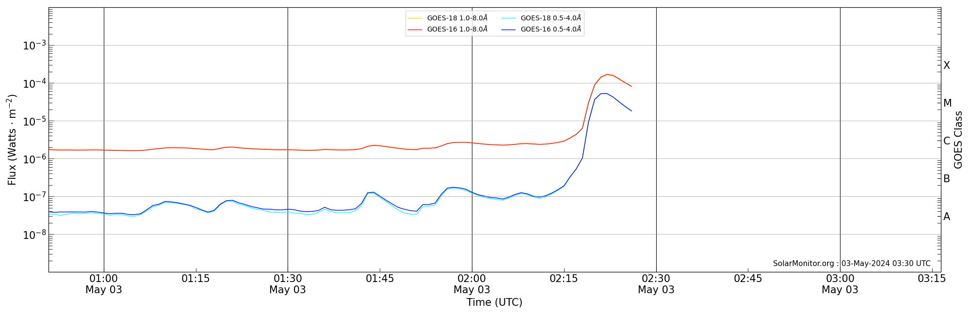 | 2024-05-03T01:51:00 | 01:59:00 | 02:16:25 | 25, -7 | 13663 | C2.7 | HEK : SSW Latest Events |