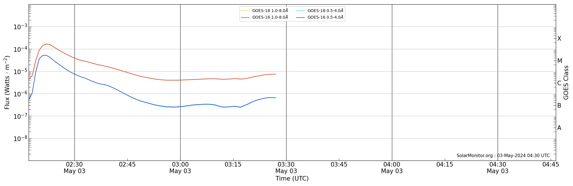 | 2024-05-03T03:17:00 | 03:27:00 | 03:46:27 | -5, 89 | 13654 | C7.5 | HEK : SSW Latest Events |