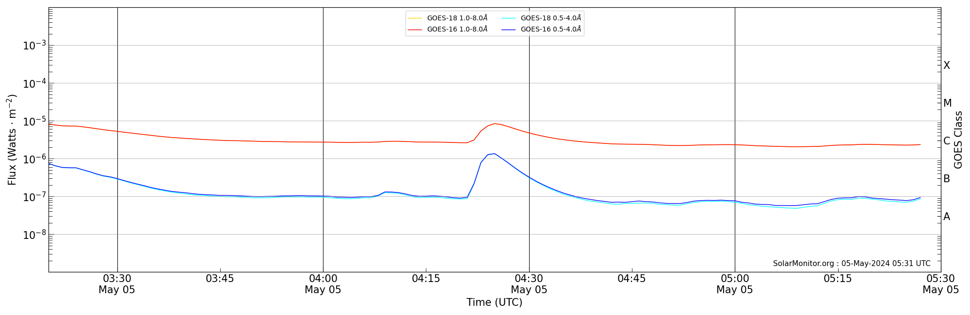 | 2024-05-05T04:20:00 | 04:25:00 | 04:30:00 | 25, 18 | 13663 | C8.4 | HEK : SSW Latest Events |
