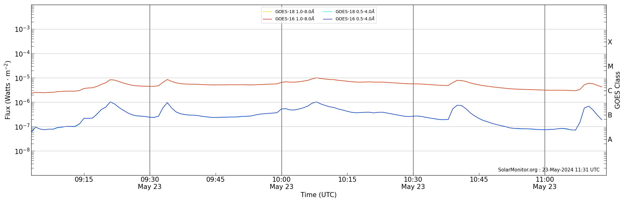 | 2024-05-23T10:03:00 | 10:08:00 | 10:14:00 | -9, 64 | 13679 | M1.0 | HEK : SSW Latest Events |