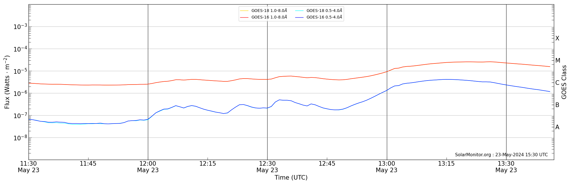 | 2024-05-23T12:30:00 | 12:36:00 | 12:42:00 | -9, 65 | 13679 | C5.9 | HEK : SSW Latest Events |
