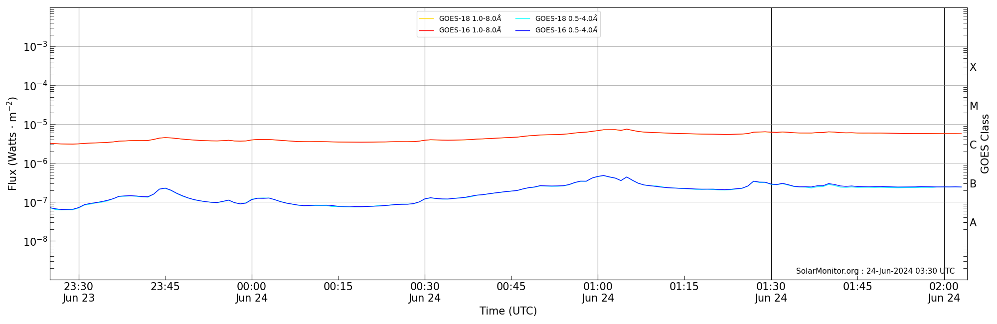 | 2024-06-24T00:25:00 | 01:03:00 | 01:04:00 | -21, -80 | 13723 | C7.3 | HEK : SSW Latest Events |