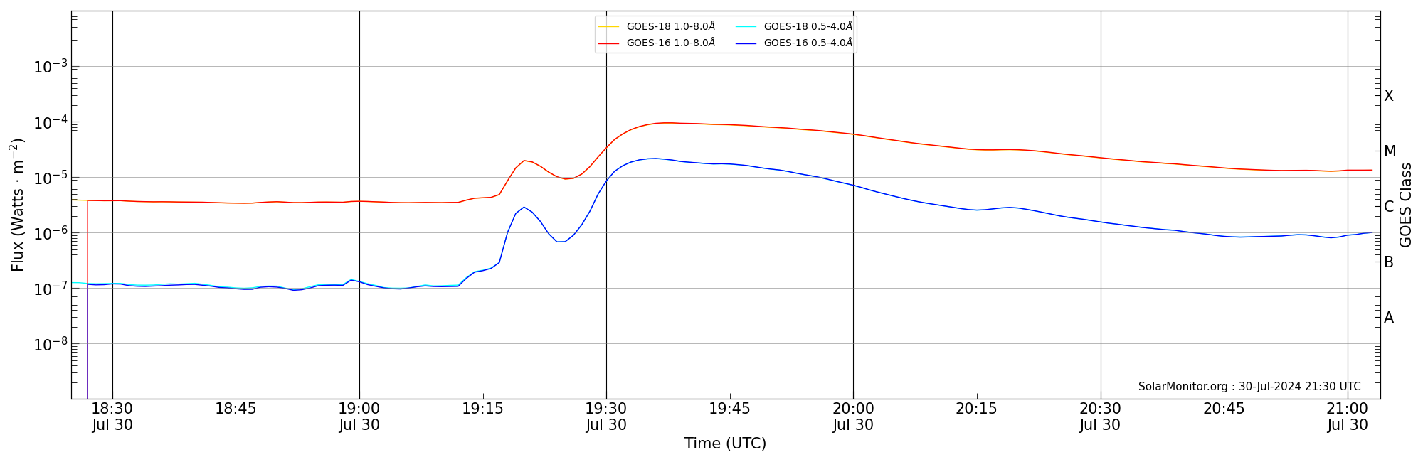 | 2024-07-30T19:25:00 | 19:38:00 | 20:04:00 | -24, -67 | None | M9.4 | HEK : SSW Latest Events |