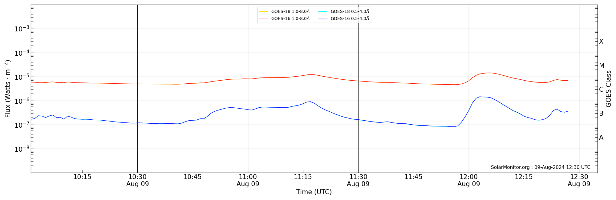 | 2024-08-09T11:01:00 | 11:17:00 | 11:35:00 | -14, -10 | 13780 | M1.2 | HEK : SSW Latest Events |