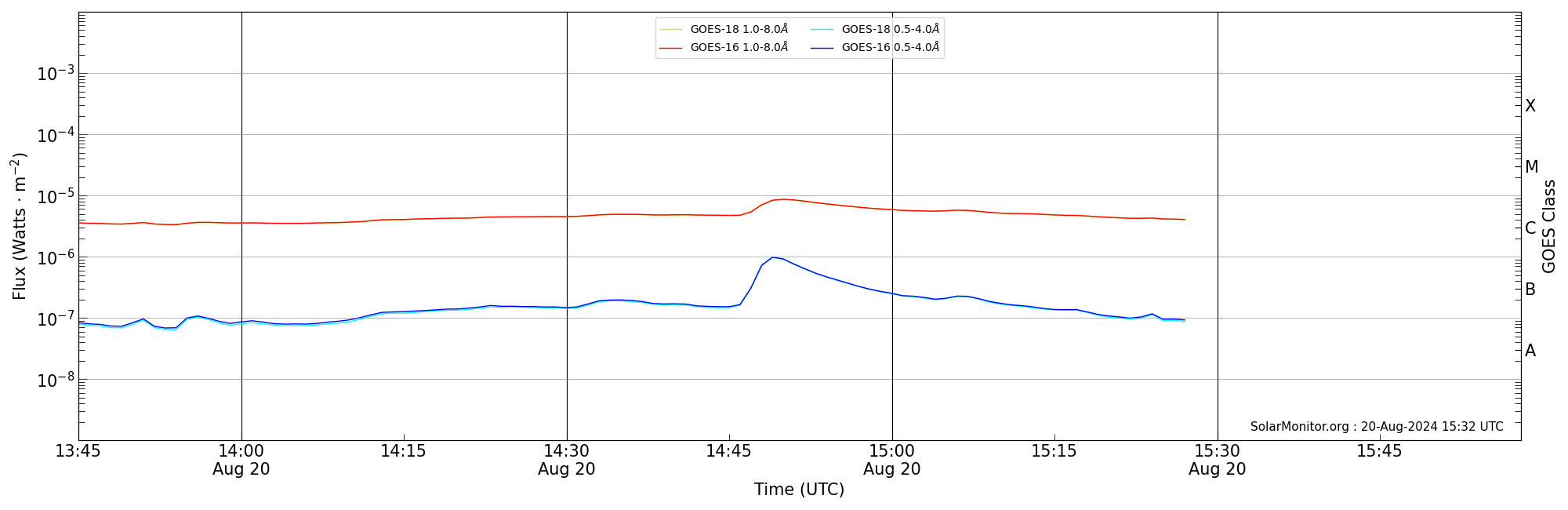 2024-08-20T14:45:00 | 14:50:00 | 14:58:00 | 18, 83 | 13784 | C8.7 | HEK : SSW Latest Events |