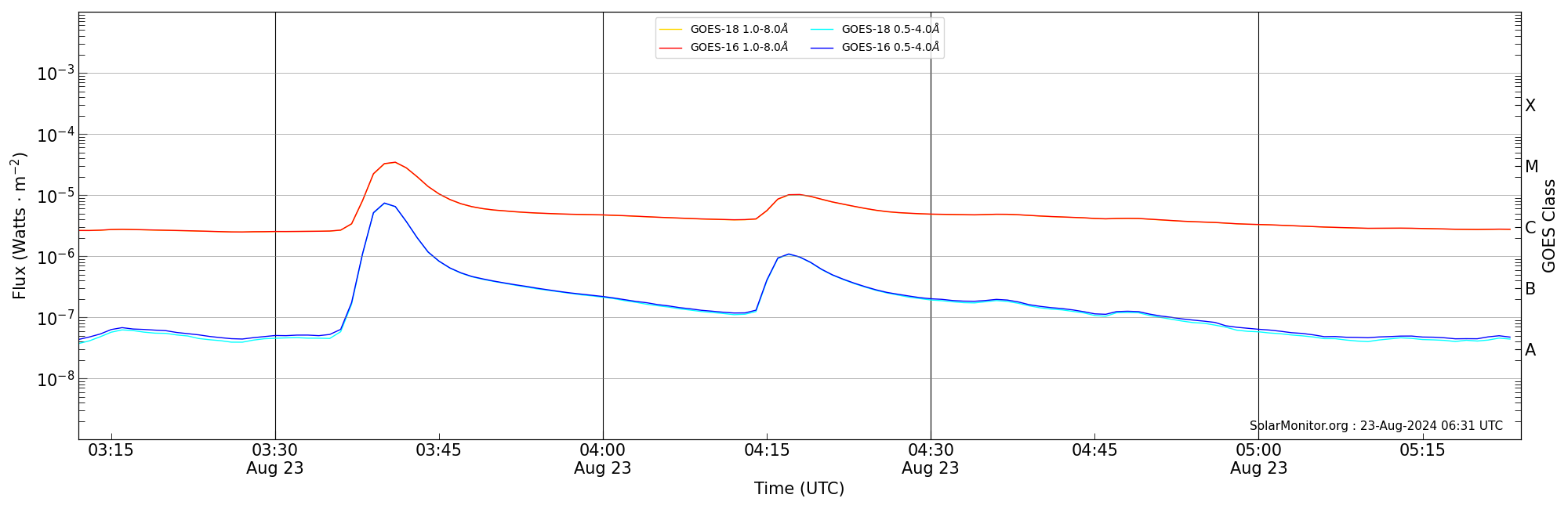 2024-08-23T04:12:00 | 04:18:00 | 04:24:00 | -27, -32 | 13800 | M1.0 | HEK : SSW Latest Events |