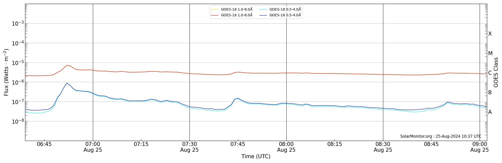 2024-08-25T07:39:00 | 07:45:00 | 08:02:14 | -28, -6 | 13800 | C3.2 | HEK : SSW Latest Events |