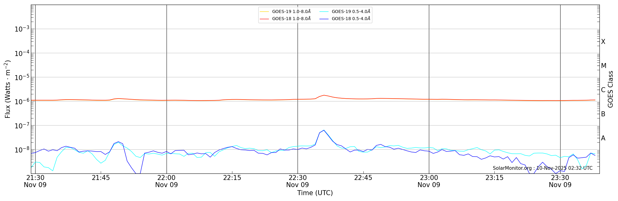 | 2025-11-09T22:29:00 | 22:36:00 | 22:39:00 | -5, -25 | 14277 | C1.8 | HEK : SSW Latest Events |