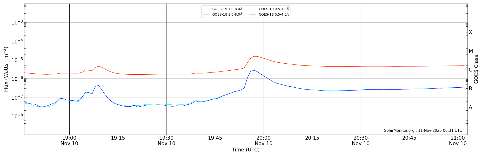 | 2025-11-10T19:46:00 | 19:57:00 | 20:03:00 | 22, 19 | 14274 | M1.5 | HEK : SSW Latest Events |
