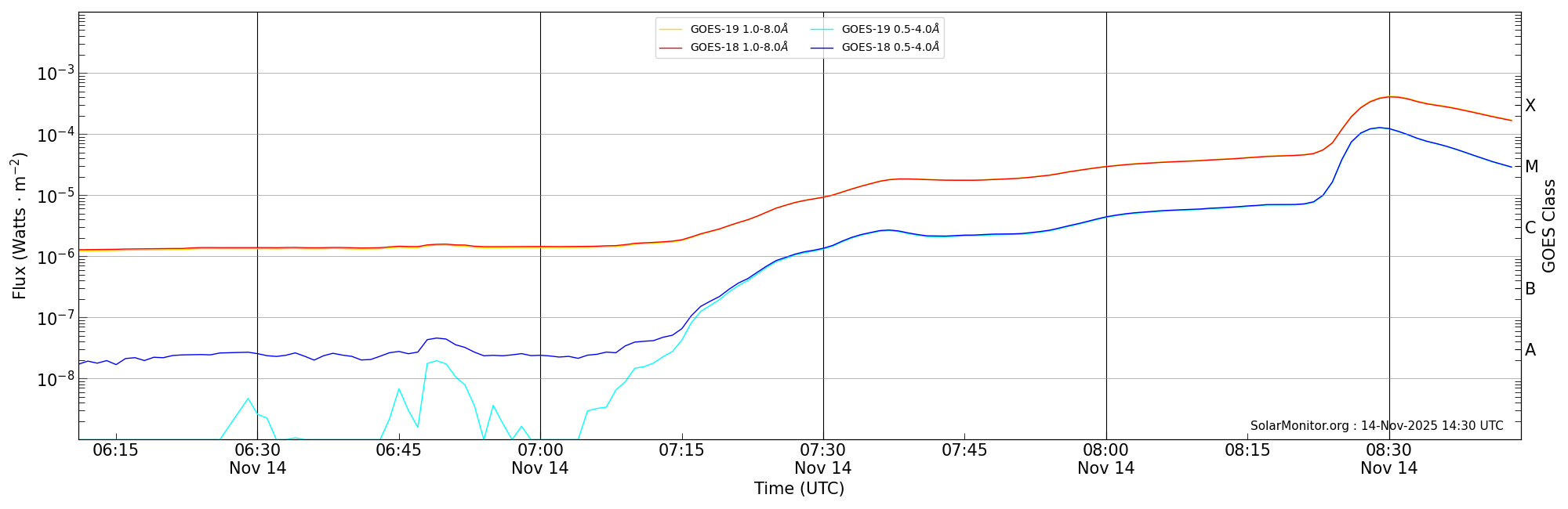 | 2025-11-14T07:11:00 | 07:39:00 | 07:44:00 | 22, 62 | 14274 | M1.8 | HEK : SSW Latest Events |