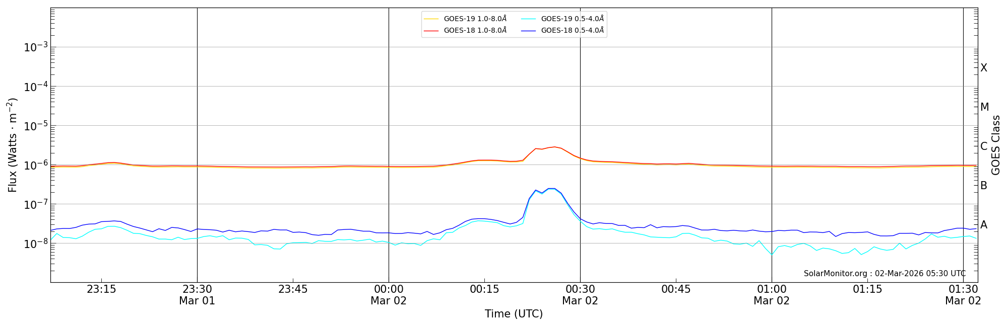 | 2026-03-02T00:07:00 | 00:15:00 | 00:32:15 | 11, -88 | None | C1.3 | HEK : SSW Latest Events |