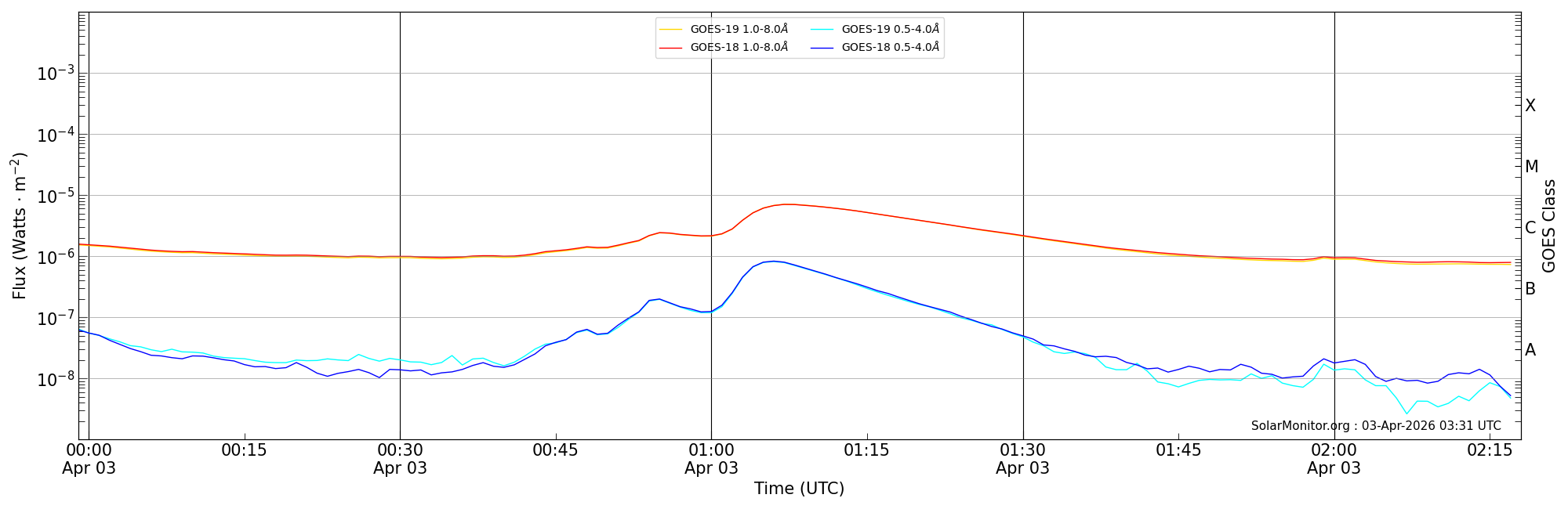 | 2026-04-03T00:59:00 | 01:07:00 | 01:18:00 | 2, -13 | 14409 | C7.0 | HEK : SSW Latest Events |