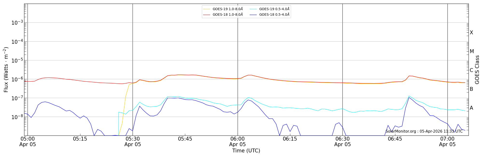 | 2026-04-05T05:59:00 | 06:04:00 | 06:06:00 | 9, -19 | None | C1.6 | HEK : SSW Latest Events |