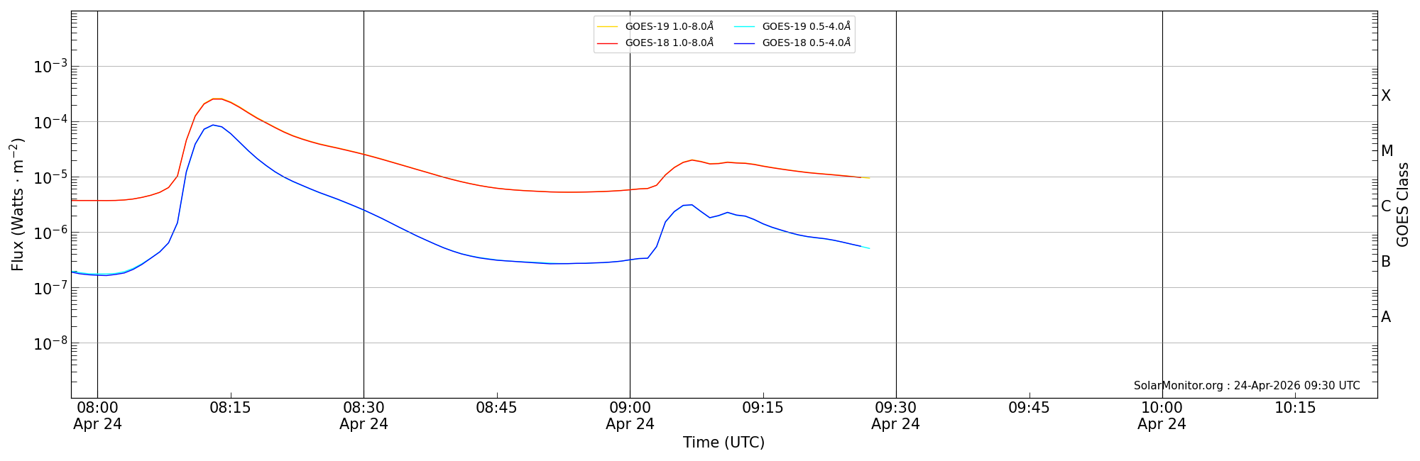 | 2026-04-24T08:57:00 | 09:07:00 | 09:24:15 | -5, -40 | 14421 | M2.0 | HEK : SSW Latest Events |